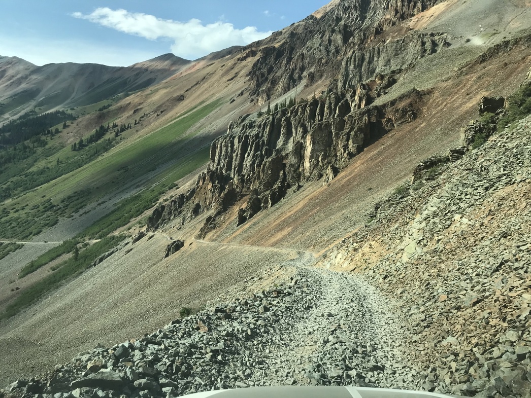 Так что остальные adventures этого колорадского дня показались просто забавными пустяками: то пришлось мне метров триста пятиться по тропке, рискуя в очередной раз ободрать правый борт или рухнуть в пропасть, чтобы пропустить большую колонну встречных. То, выставляя авто для съемки, остановиться от обрыва глубиной около 4500 м в считанных сантиметрах. Но справились. Хотя чем нас встретит завтра штат Юта с его пустыней Моаб — страшно представить. Но, как говорится: in god we trust…