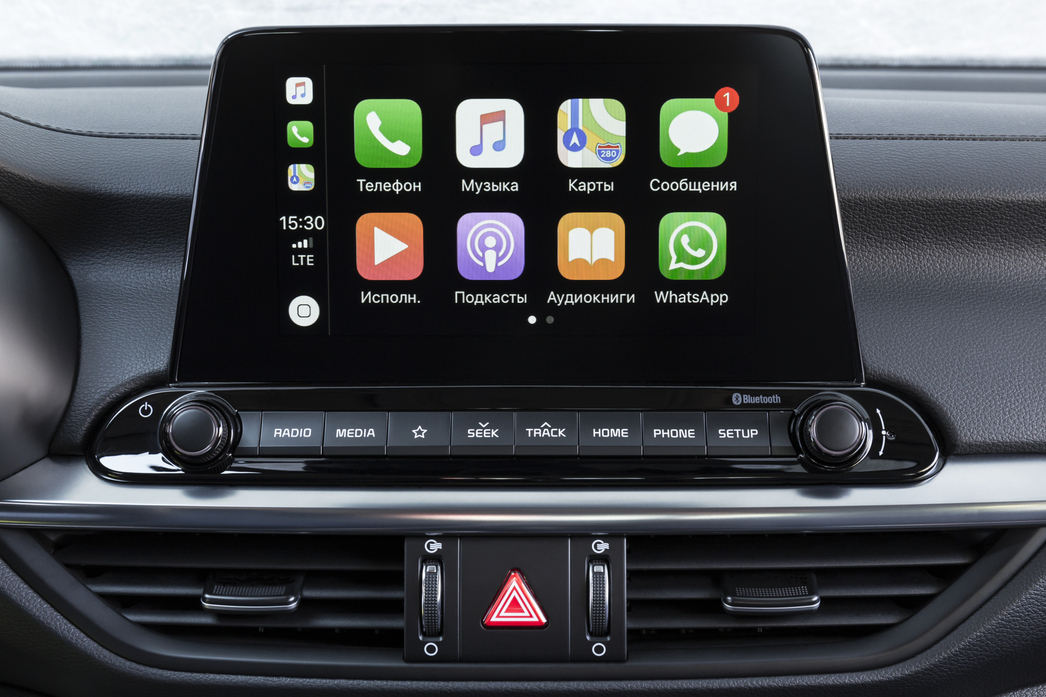 Тут достаточно сказать, что уже в базе «кореец» имеет аудиосистему с шестью динамиками и монохромный или цветной (в зависимости от версии) дисплей. Мультимедийная система всех уровней порадует радио, USB- и AUX-входами, поддержкой формата МР3 и Bluetooth.