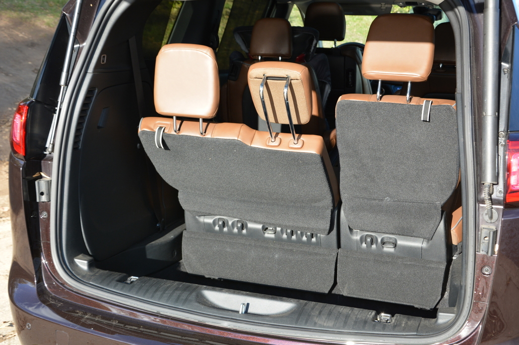 Чего сложно встретить даже на самом премиальном премиуме, так это не просто электропривод регулировки третьего ряда пассажирских сидений, а возможность нажатием кнопки сложить их в ровный пол или наоборот — поднять их оттуда.