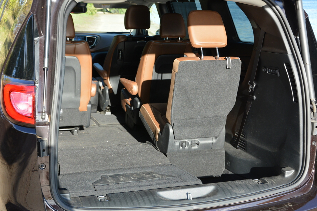 Точно такой же фокус, кстати, — то есть полная уборка в специальную нишу в полу, — возможен и с обоими креслами и второго ряда. В таком варианте грузовые возможности Pacifica становятся уж совсем неприличными — почти 4 кубометра свободного места!