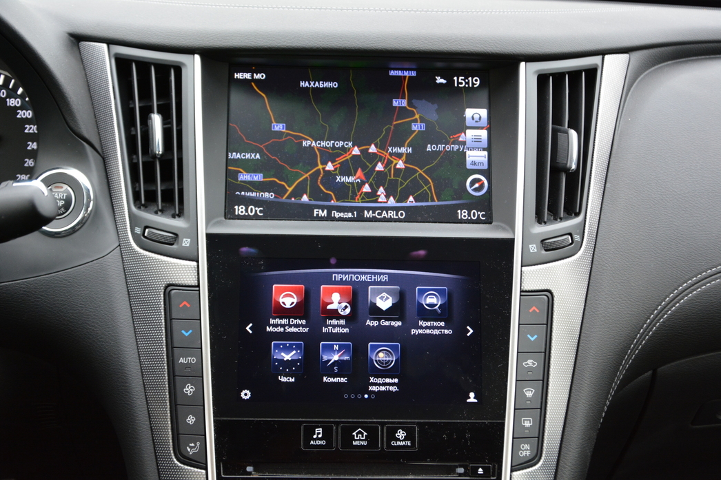 Неплохо, кстати, что дизайнеры интерьера Infiniti Q50 не стали злоупотреблять не только «квазидеревянной», но и деревянной отделкой салона машины, как это принято сейчас у японских брендов-конкурентов. Прочие автопроизводители уже давно и с энтузиазмом лепят «дерево» в свои бюджетные машины — подобные детали интерьера теперь воспринимается, скорее, как признак безвкусицы и китча, а не богатства и стиля, как это было раньше.