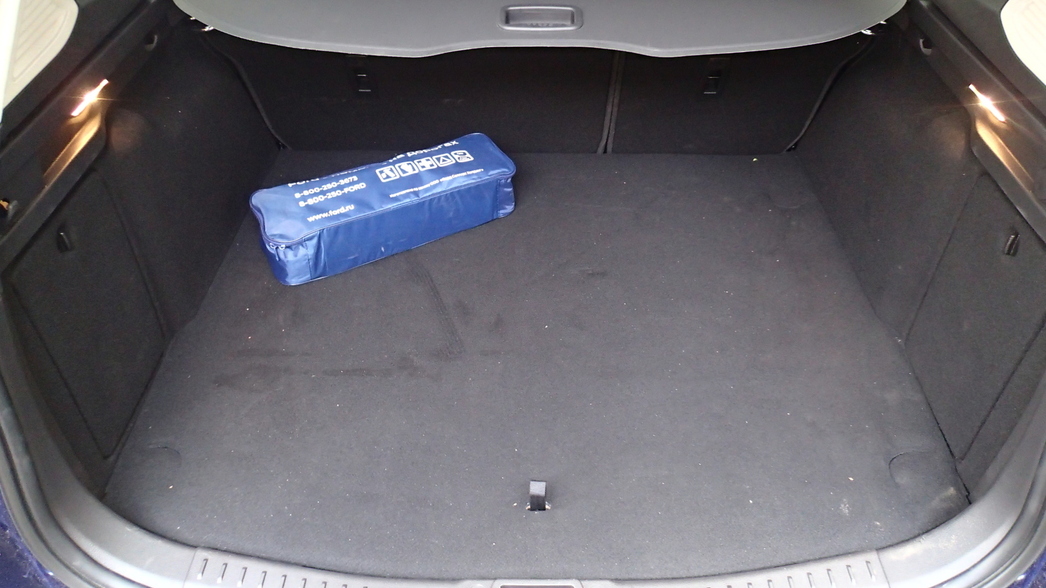 Чтобы снарядить в задней части американского универсала ровный пол, потребуется сперва поднять подушки задних сидений, а потом опустить на них спинки. 476/1502 л — для багажного отсека в «сарае» это не самая большая величина, зато у «Фокуса» совсем небольшая погрузочная высота.
