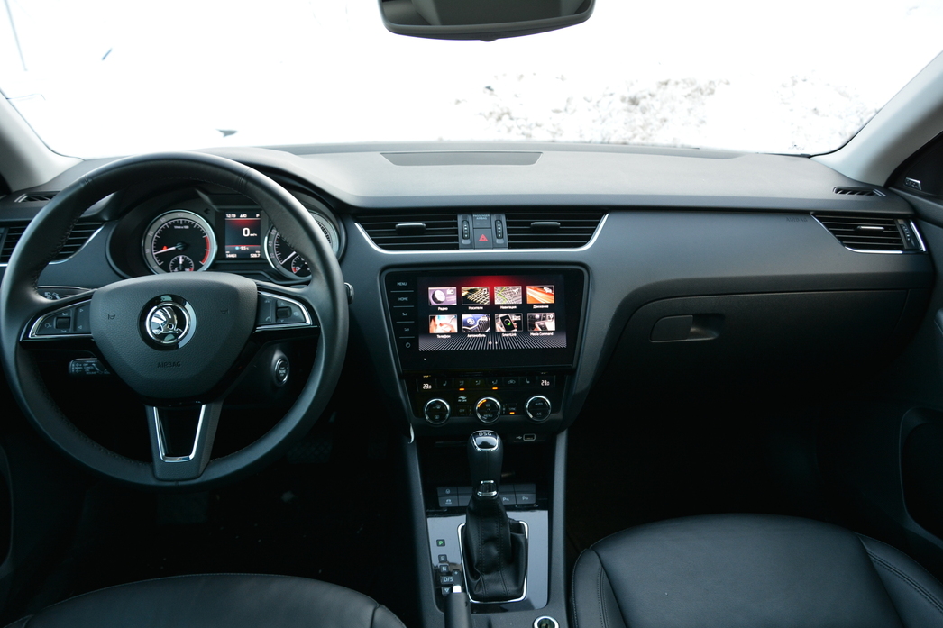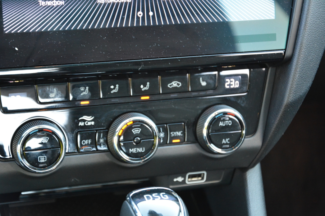 Помимо топового тандема мотор-трансмиссия, «наша» Oсtavia Combi была по-максимуму «нафарширована» всеми возможными опциями, которые только может сейчас предложить Skoda потенциальному покупателю. Начиная с дорогой цветной мультимедийки на центральной консоли и заканчивая стеклянной крышей с люком, а также подогревами всего и вся, электроприводом пятой двери и даже настраиваемым цветом «эстетической» подсветкой салона.