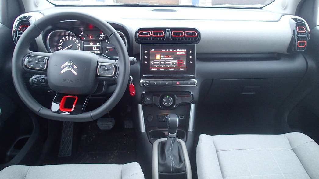 В оригинально оформленном салоне Juke по-прежнему не скучно, но, увы, в сравнении с более молодыми конкурентами здесь имеются явные просчеты: рулевая колонка регулируется только по наклону, размер монитора тут самый маленький — всего 5,8 дюймов против 8-и у «Тойоты» и 7-и у «Ситроена», не хватает отделений для мелочей (впрочем, этим страдает также и Citroёn C3 Aircross), недостаточно пространства на втором ряду, да и пластик у «Ниссан» самый бюджетный. Зато в оснащении Juke предлагается система кругового обзора, который отстуствует в списках опций конкурентов.