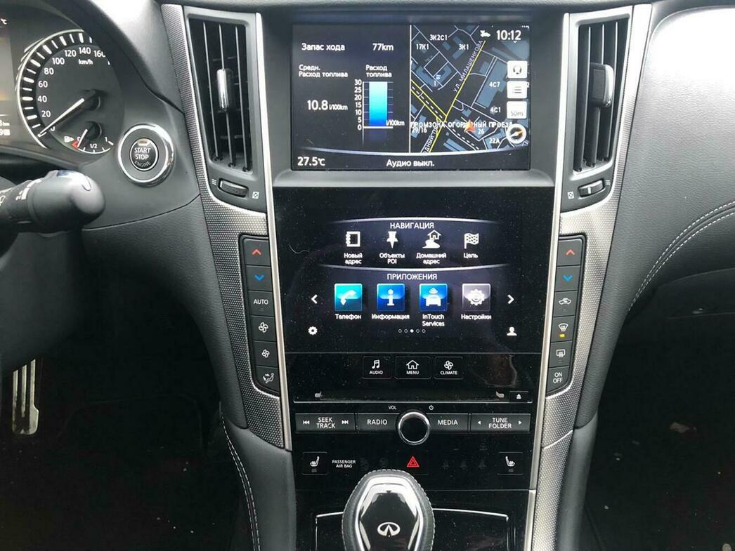 Внутри машины различаются не меньше, чем снаружи. Помимо радикально разного дизайна приборных досок, в глаза сразу же бросаются различия в оформлении центральных консолей. «Двухэтажная», с двумя тачскринами у Infiniti Q50 резко контрастирует с концепцией аналогичной части салона Genesis G70.