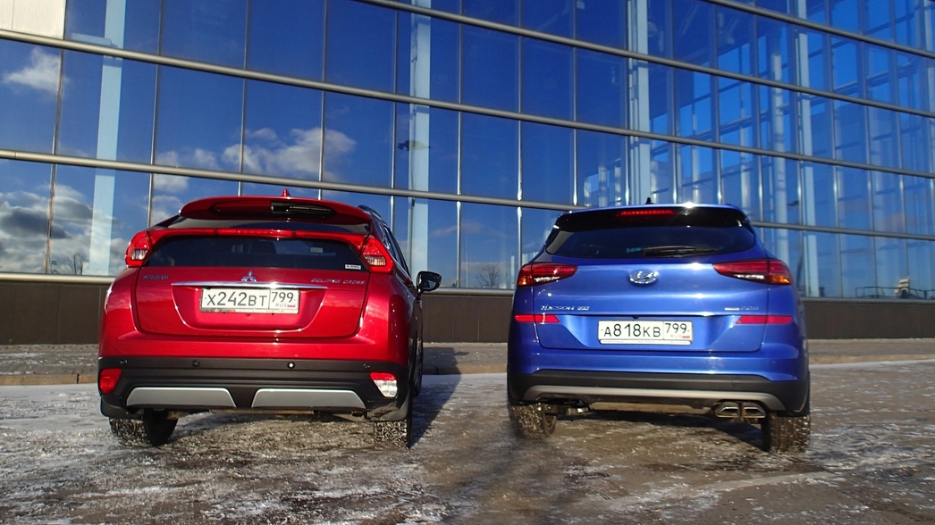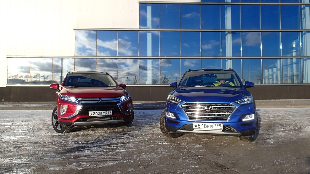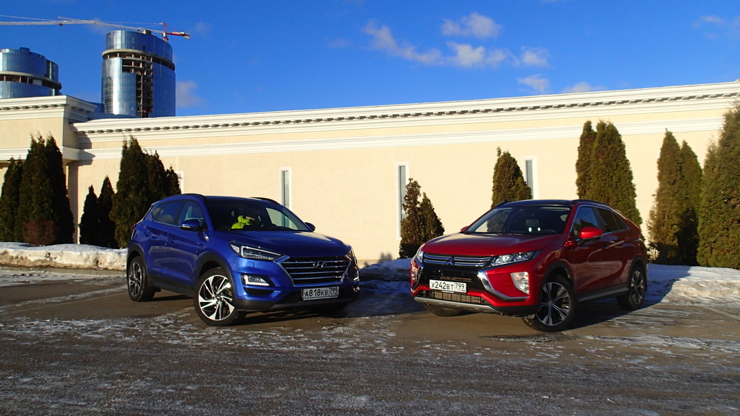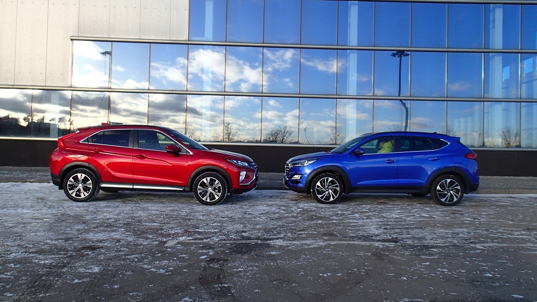 В качестве тестовых экземпляров мы использовали Hyundai Tucson с 2-литровым турбодизелем мощностью 185 л. с. и восьмиступенчатым «автоматом», а также Mitsubishi Eclipse Cross со 150-сильным турбомотором объемом 1,5 л и бесступенчатым вариатором. Оба автомобиля оснащены системой полного привода.