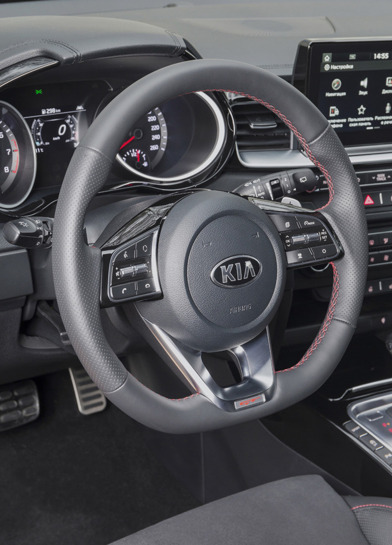 Забегая вперед скажу, что действительно — претензий к машине по этой части за все время тест-драйва не возникло никаких. В ходе него плотно поездить удалось и на GT line, и на GT, поэтому волей неволей пришлось сравнивать. Обе машины показались довольно жесткими на ходу. Наверняка с помощью новых пружин и амортизаторов корейские инженеры стремились добиться лучшей управляемости — отсюда и жесткость.