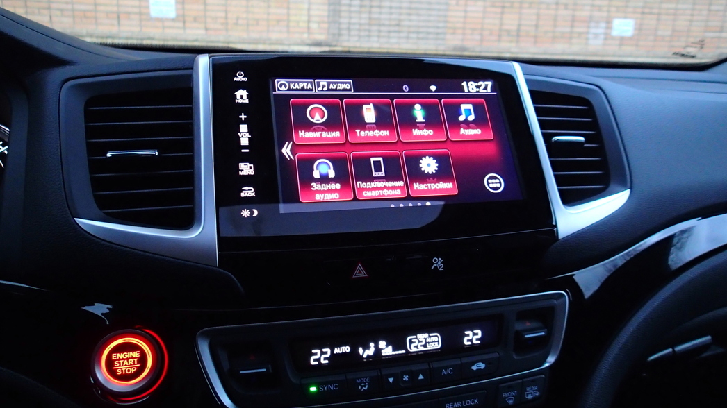 Отрадно, что и после рестайлинга Honda Pilot третьего поколения не изменяет себе в главном — в огромных размерах, которые по-прежнему заслуживают если не почета, то уж точно уважения — 4954х1997х1788. Ведь японский гигант предоставляет в сегменте эксклюзивную возможность принять на борт восемь человек.