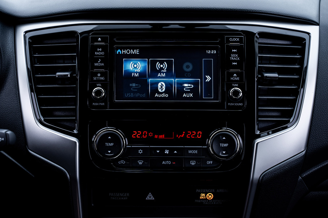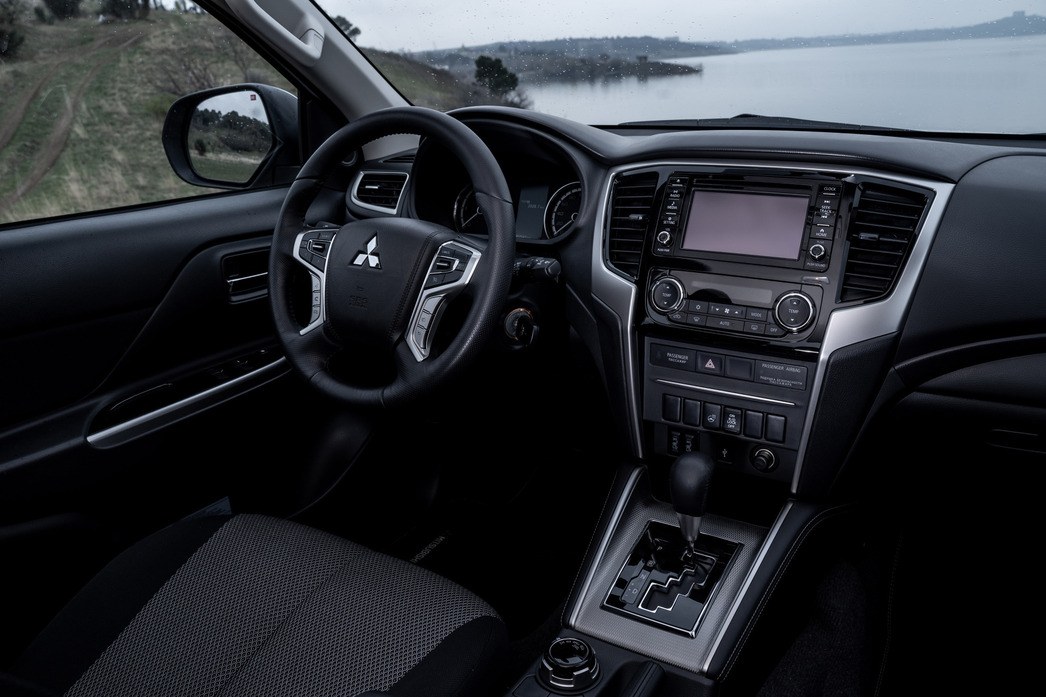 В обновлении «Митсу» выбрали достаточно простой, но продуктивный путь: оставить все лучшее, добавить чего требуется. Салон нового L200 — как у Pajero Sport: та же торпедо и центральный тоннель, тот же селектор трансмиссии и аналогичные кресла. Руль, полностью идентичный «Паджеро Спорт», теперь наделен клавишами активации различных опций и подогревом в местах хвата. «Тритон» получил новый щиток приборов, двузонный климат-контроль и дополнительные два USB-порта для задних пассажиров, разместившиеся рядом с удобной полкой для смартфонов в центральном подлокотнике.