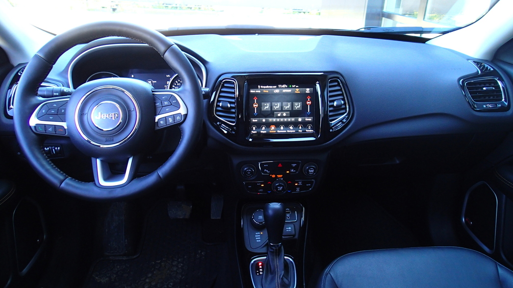 Центральная консоль в «Компассе» явно перегружена, и в сравнении с «немцем», на ней царит хаос. Конечно, разобраться с элементами управления и нетрудно, но привыкнуть, например, к неудобно расположенному блоку климат-контроля в нижней части — оказалось проблемой. Чтобы отрегулировать температуру, необходимо целиться в кнопки пальцем, отвлекаясь от дороги. Традиционные кругляши, от которых Volkswagen, к счастью, до сих пор не отказался, в этом смысле гораздо удобнее.