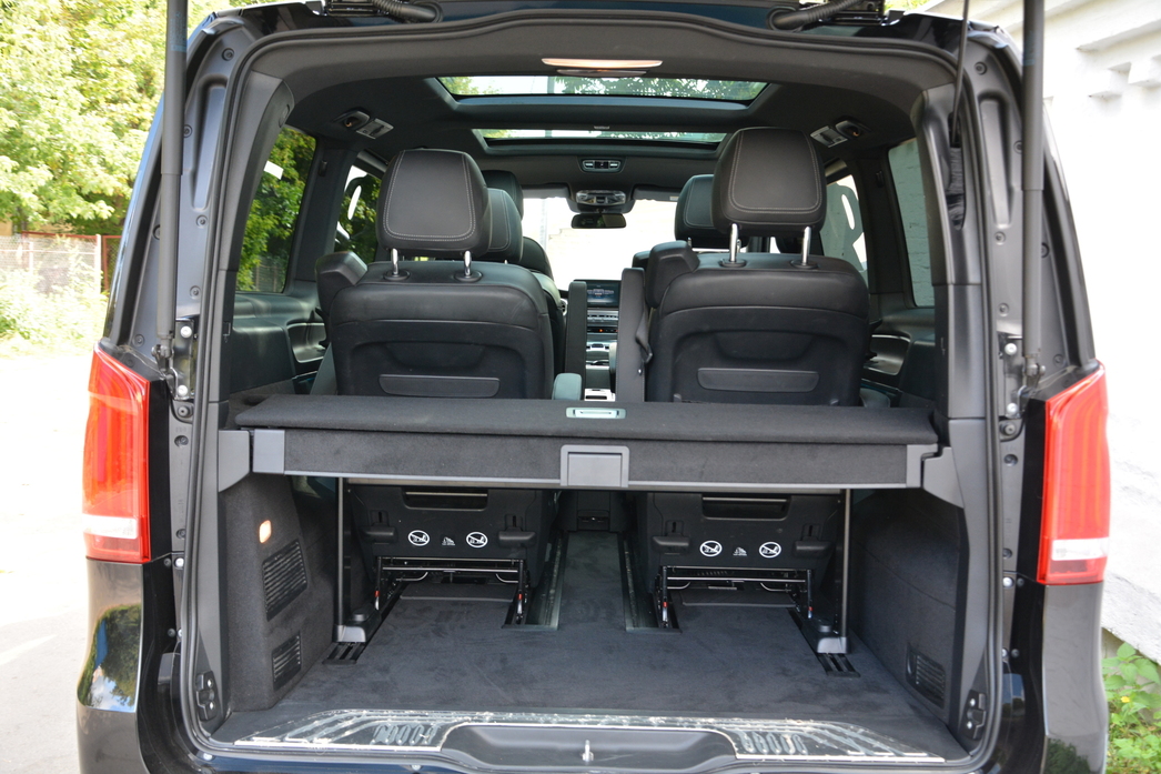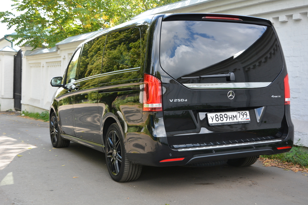 Зато динамика — очень даже! В компании с 190-сильным дизелем, полным приводом и 7-ступенчатым «автоматом» Mercedes V-klasse набирает 100 км/ч чуть более, чем за 9 секунд. Для такой «тушки» — еще как достаточно. Пожалуй, единственный параметр, по которому он уступает какому-нибудь премиальному кроссоверу — геометрия кузова. Колесная база минивена достаточно велика, 3200 мм, при том, что дорожный просвет не особо велик — 160 мм. В остальном — сплошные преимущества.