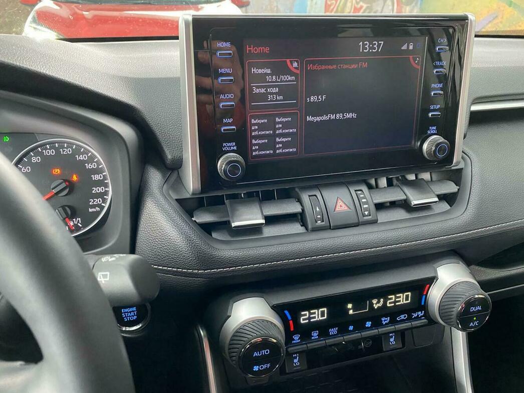 У Sportage же «тачскрин» по-простому «утоплен» в консоль. Не сомневаемся, что в вот-вот ожидающемся на рынке следующем поколении этого корейского кроссовера он тоже «встанет колом» — как у новенького KIA Seltos. «Приборка» RAV4, разумеется, тоже воспринимается как намного более современная. Если у Sportage тут все по старинке — в черно-белой гамме, без излишеств, — то у «равчика» она и цветная, и «мультики» всякие показывать умеет — например, текущее распределение крутящего момента по осям демонстрирует в красках.