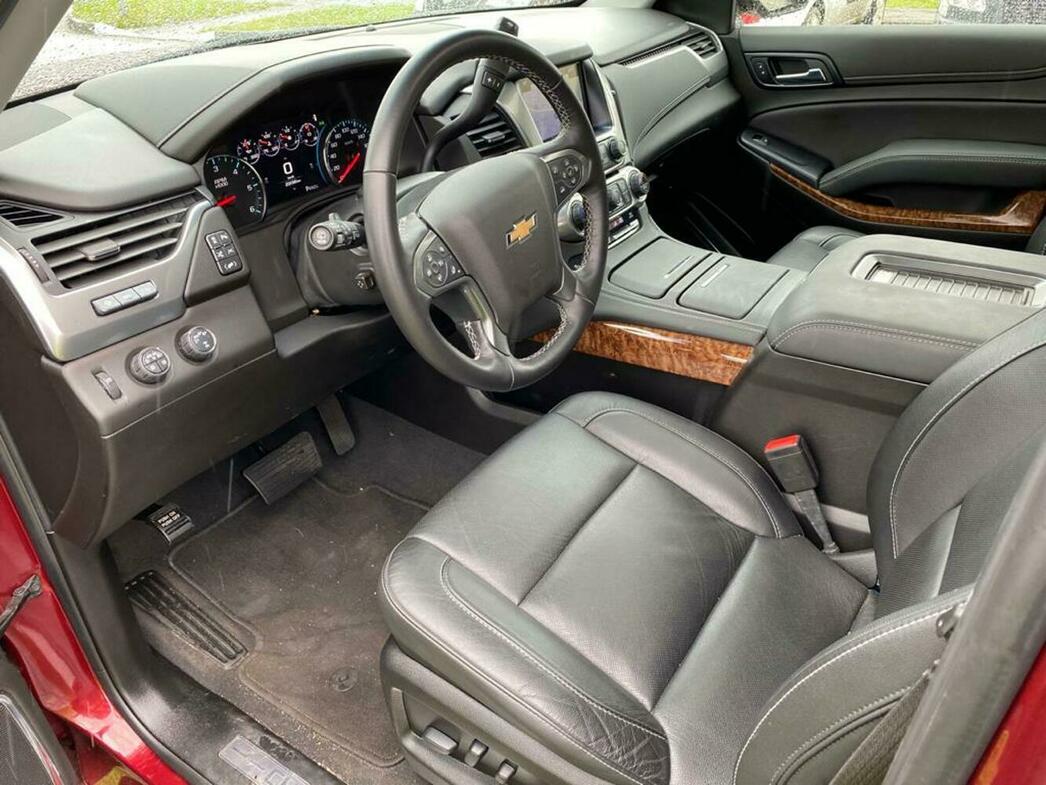 Его огромная морда словно разделена на две горизонтальные части, «перья» передних фар затекают на крылья. Ясное дело, головная оптика оборудована современными ДХО и прожекторными фарами с автоматическим переключением на дальний свет. А огромные 20-дюймовые хромированные колеса только подчеркивают серьезный и уверенный настрой Chevrolet Tahoe.