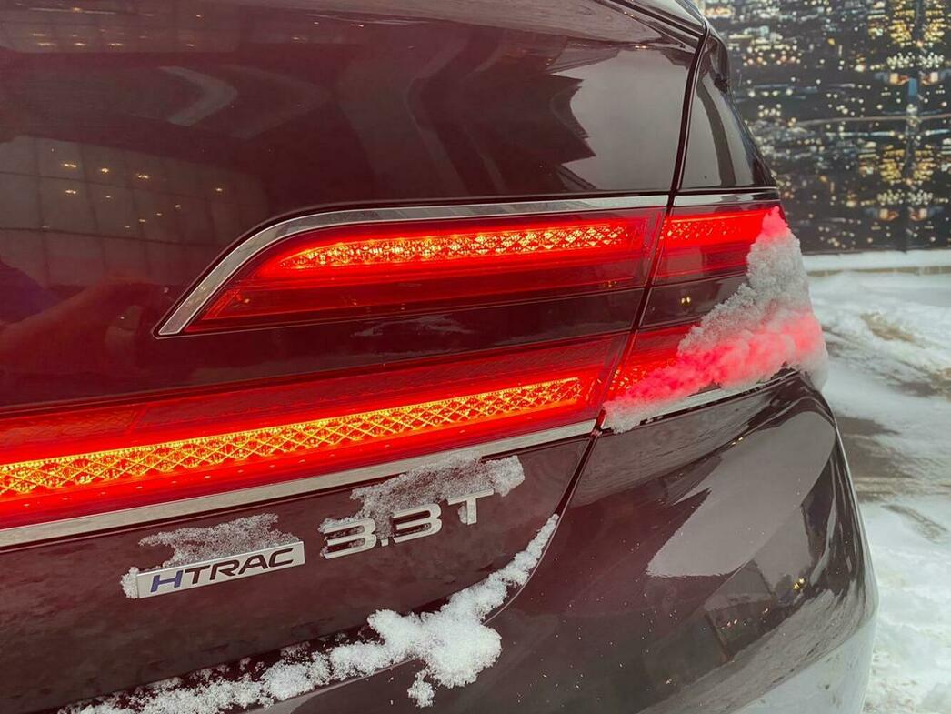 Вот и Genesis G90 пытается демонстрировать вселенной консервативный внешний вид кристаллически замороженного пафоса. Это ощущение не рушат ни оригинаьная фальшрадиаторная решетка в виде слегка сплющенного рыцарского щита, ни модные полосы светодиодов в фарах, ни огненная «ватерлиния» поперек всей кормы машины. Вроде все современно. Но и сурово-«федерально» при этом. Впрочем, слегка попривыкнув к машине, перестаешь на это обращать внимание.