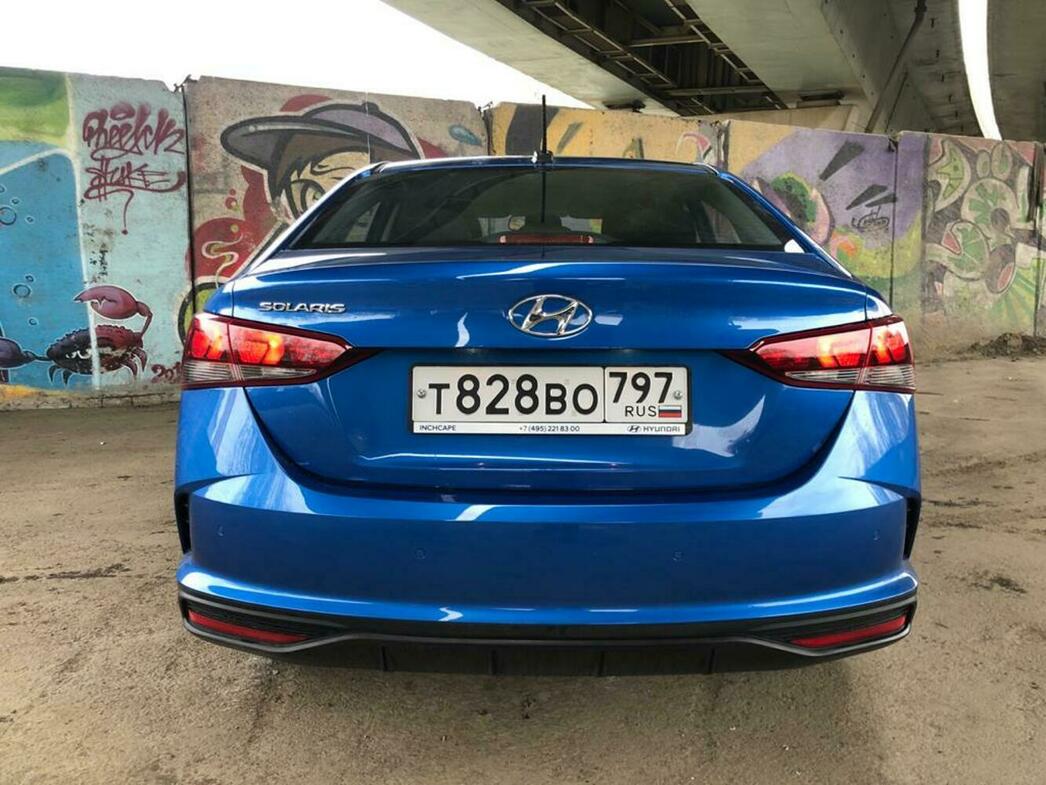 За последние годы корейцы «причесали» свое детище, сгладили острые углы дизайна как снаружи, так и внутри. Машина обзавелась треугольными светодиодными фарами со скобообразными дневными ходовыми огнями, огромной перевернутой трапециевидной радиаторной решеткой и современными задними фонарями. Да и синий цвет Marina Blue отлично подходит для Solaris, которые мы обычно привыкли видеть в бело-желтом цвете. Типичный азиатский дизайн, к которому, впрочем, мы все уже давно привыкли. Одним словом, по нынешним временам, если хочешь быть незаметным, катайся на Solaris.