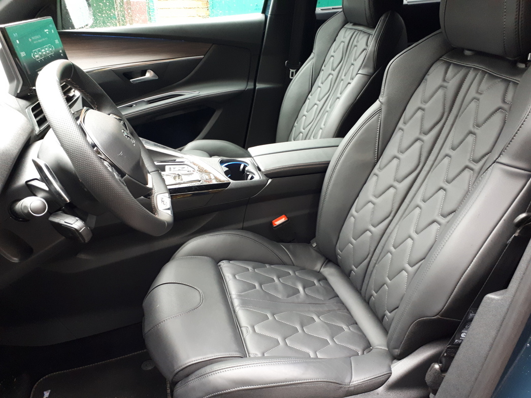 В моем «Пежо» кресла отделаны кожей с ромбовидным рисунком. Выглядит симпатично, да и к профилю кресла нет претензий. Здесь есть электрорегулировка поясничного подпора и даже функция массажа. А еще у кроссовера по умолчанию теперь три ряда кресел. Напомню, что раньше третий ряд был опцией.