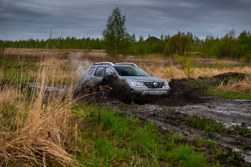 «Дастер» не зря считают доступным внедорожником, и с новым поколением он сохранил это качество. Машина уверенно ползет в размытой колее. Если грязь становится «жирнее», то видно, как кроссовер напрягается. Препятствие берется у же со второй-третьей попытки с хорошими пробуксовками, когда жидкая субстанция из-под колес летит на самую крышу. Но все идет штатно.