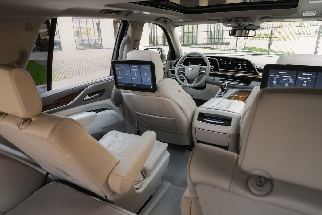 Скрасить настроение обитателей салона призвана умопомрачительная акустическая система AKG с 36 динамиками и эффектом концертного зала, а пассажирам двух задних рядов доступны индивидуальные мониторы развлекательного центра. Опять же — самые большие в автосегменте — по 12,6 дюймов каждый.