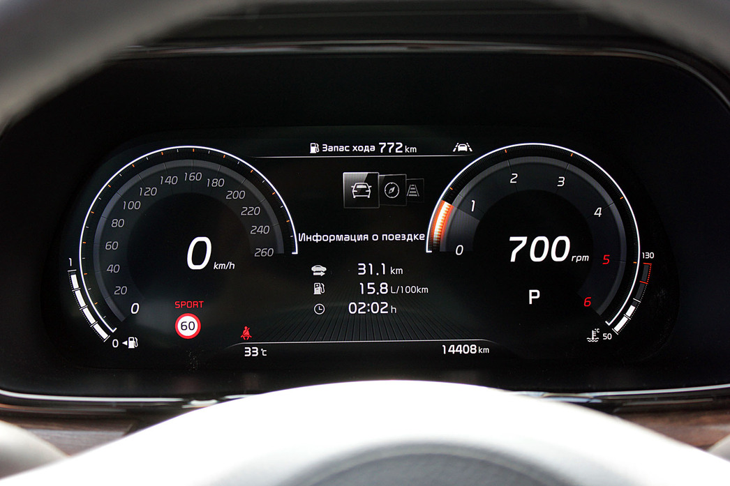 Однако, несмотря на некоторые досадные промахи, едет KIA Mohave просто замечательно. Связка из проверенного трехлитрового дизеля и восьмиступенчатого автомата настроена настолько круто, что малейшее нажатие на педаль газ моментально передается на все четыре колеса, разгоняя внедорожник массой в 2300 кг за 8,7 секунды. 249-сильный дизель и 549 Нм дают большую уверенность не только в асфальтовом режиме, но и при съезде с него. И вот здесь стоит остановимся подробнее.