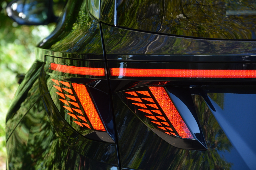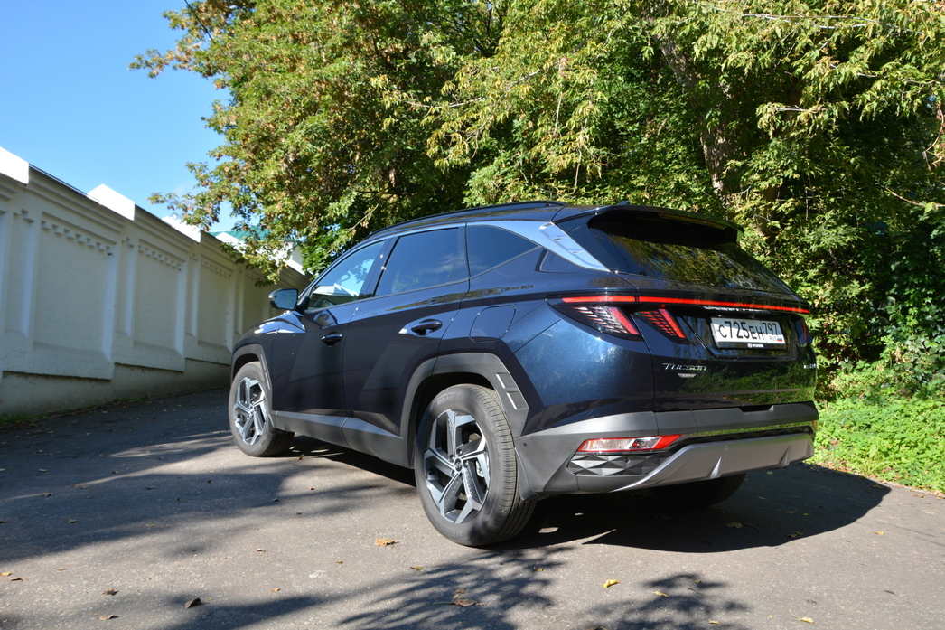 А вот «ломано-мятые» грани боковых панелей Tucson воспринимаются уже как нечто само-собой разумеющееся: с ними мы познакомились на Elantra. Прикольно, кстати, вышло с эмблемой Hyundai на пятой двери машины. Она тут встроена в нижнюю часть остекления таким образом, что кажется, будто это «кнопка» для подъема стекла отдельно от остальной двери. Подобная фишка иной раз встречалась на крупных внедорожниках. На Tucson этой опции нет: проверено.