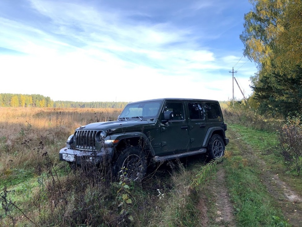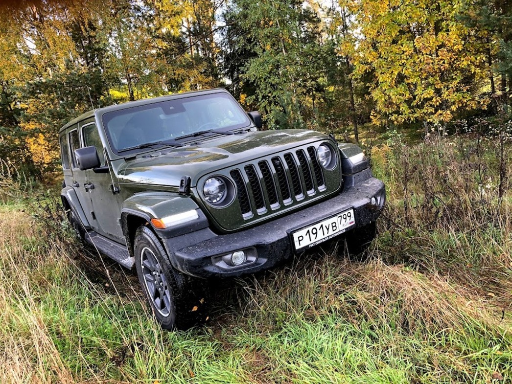 Jeep Wrangler Sahara 80th Anniversary язык с трудом поворачивается назвать «бездорожником», благодаря его удали на асфальте. Однако ты переобуваешься в воздухе, как только с асфальта скатываешься на проселок, а с него и вовсе движешься, выбирая лишь направление.