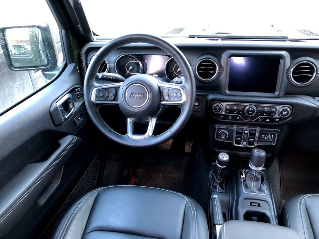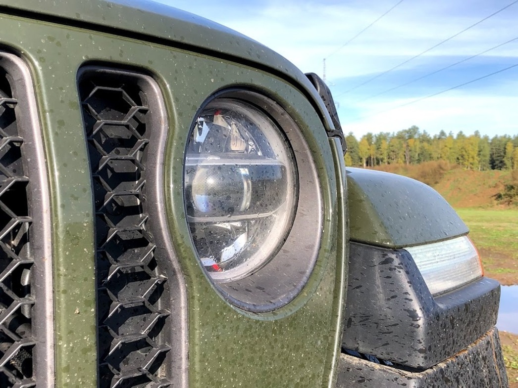 Огромный передний бампер и расширители арок, роскошная круглая оптика со светодиодами внутри и гигантские колеса — как и любой из линейки «Рэнглеров» — этот способен обратить на себя внимание. Особенно в столь воинственном маскировочном цвете. Причастность внедорожника к юбилейной серии выдают 18-е диски, решетка радиатора, головная оптика и некоторые элементы, выкрашенные в дорогой матовый серый цвет Granite Crystal. Окончательно утвердиться в догадках эксклюзивности комплектации можно по шильдикам 80th Anniversary, и забравшись внутрь.