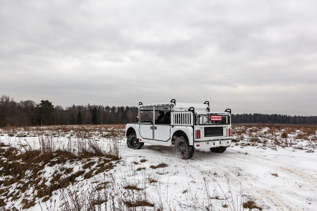 Для того, чтобы обеспечить хорошую проходимость инженеры F-MotorSport нагрузили задок двигателем, как это делается в багги. И для большей же проходимости заднюю ось дооснастили самоблокирующимся межколесным дифференциалом. Ну и, естественно, куда ж без грязевой резины?