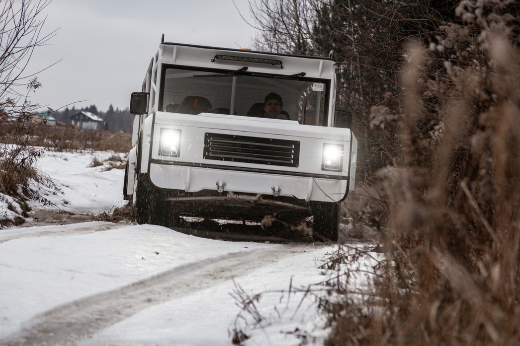 Во-первых, кузов в два слоя окрашен полимерным защитным покрытием на основе полимочевины. Во-вторых, везде, где в рядовых машинах в открытую используется металл и алюминий, у «Стахановца» нержавейка — от заливной горловины топливного бака, до различных магистралей и агрегатов в подкапотном пространстве и того же барботажного бака, который предотвращает искрение в выхлопе.