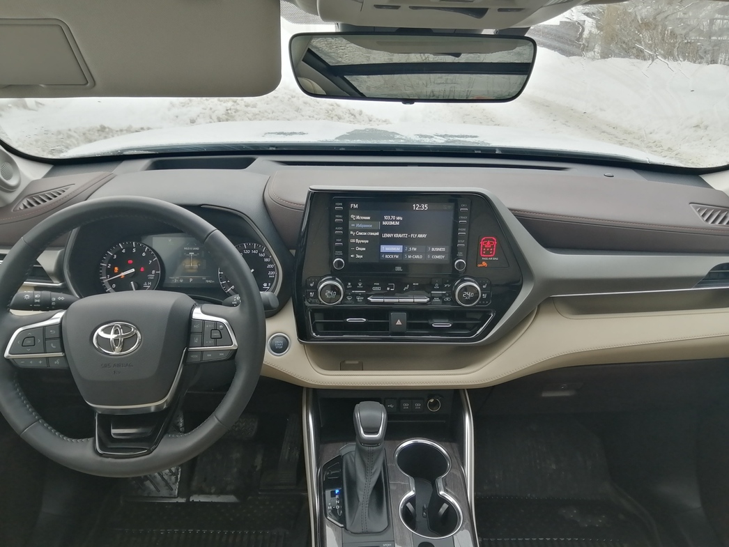 Да, однажды познакомившись с Toyota, ты ни с каким иным автопроизводителем не перепутаешь ее манеру оформлять интерьеры своих авто. У Highlander «тойотовский» стиль бросается в глаза в манере исполнения «приборки», излучением посаженного в асимметиричную «раму» 12-дюймовый экран мультимедиа, пиктограммой и циферок-буковок на кнопочках, разбросанных по рулевому колесу и центральной панели. Ровным счетом отовсюду…