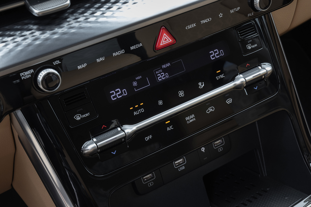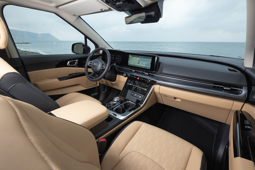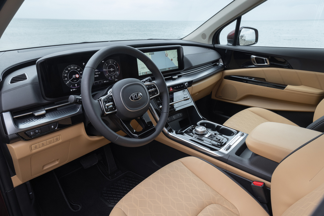 Внутренний мир «Карнавала» — более «легковой», то есть сидишь не по «автобусному», а как в обычном автомобиле, потому симпатий лично у меня он вызывает больше. Да и отделка тут богаче. Настоящий премиум! А чего стоит «бесшовный» панорамный дисплей, состоящий из двух 12,3 дюймовых экранов. Чувствуешь себя почти как в немецком кроссовере.