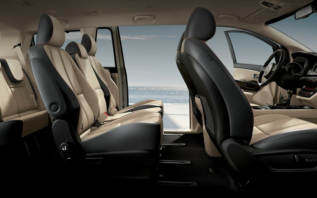 Перед тем, как сесть за руль, заглядываю в салон «Карнавала». Здесь можно увлечься, долго двигая и раскладывая ряды кресел. Скажем, второй ряд перемещается в продольном направлении на 300 мм. А центральное кресло легко превратить в столик, который можно придвинуть к первому ряду и даже развернуть.