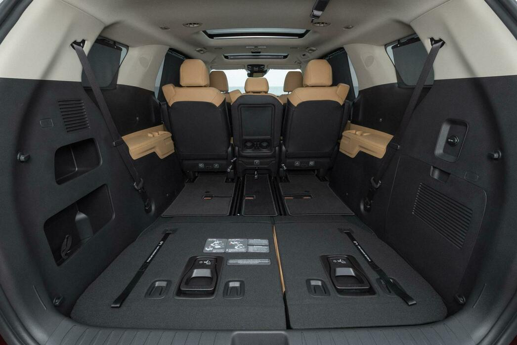 Кресла третьего ряда складываются в нишу в полу — это сделано специально для тех, кто любит возить с собой много вещей. Ну, а если убрать сразу оба рядка кресел, то в кузов войдет даже холодильник — объем 4110 литров позволяет без труда перевозить крупные вещи.