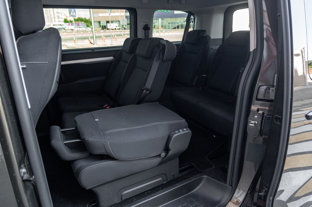 Найдется у этого минивэна и еще одна положительная сторона. Например, в базовой комплектации он предлагается с двумя сдвижными дверями. И это удобно, если вы путешествуете с детьми — они всегда будут выходить на ту сторону, которая в данной ситуации безопасней. Причем в топовой комплектации двери оснащаются электроприводом. А контроль — это всегда хорошо. Да и грузиться и грузить в SpaceTourer, когда у тебя три гигантских проема (я посчитал и багажный) в грузопассажирской части салона, многократно удобнее, чем через два.