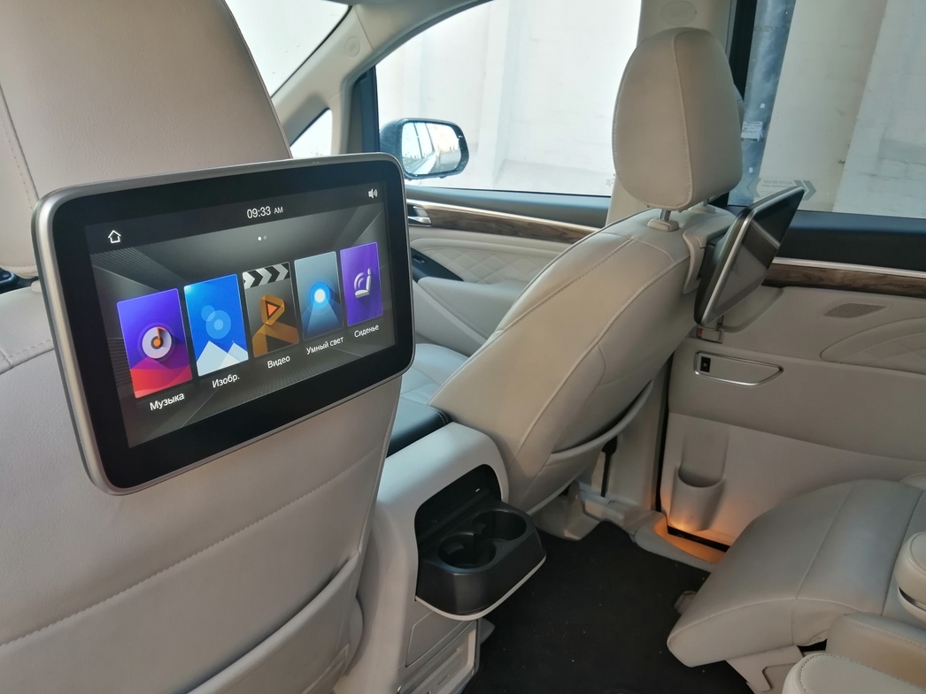 Пассажирам второго ряда сидений нашего китайского «автобуса» грех на что-либо жаловаться. Они оба сидят в «капитанских креслах» с массажем и подогревом. В их распоряжении кондиционер и по монитору мультимединой системы (на спинках передних сидений). Обитателям третьего ряда повезло меньше. Нормально усесться они смогут, только если изрядно сдвинуть вперед «капитанские кресла". Впрочем, на 'галерке» обычно путешествуют либо домашние питомцы, либо багаж. Молча и безропотно.