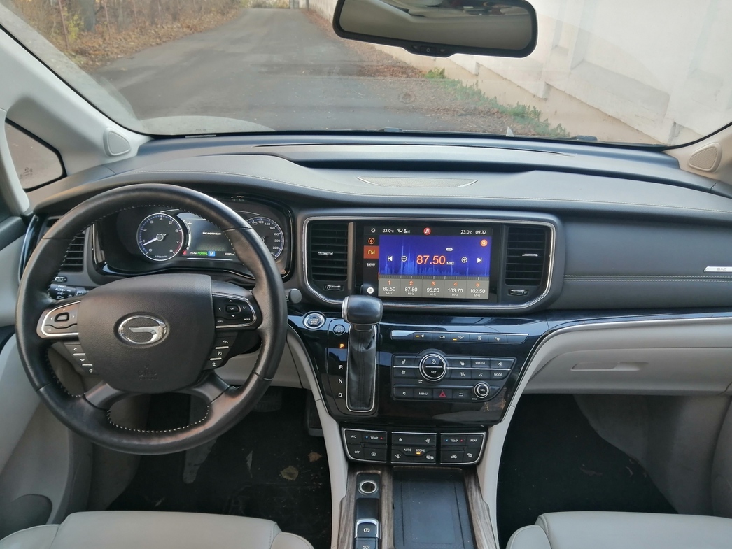Перед глазами водителя GN8 классическая «приборка» с двумя стрелочными циферблатами (спидометр и тахометр) и большим цветным дисплеем борткомпьютера между ними. Руль нагревается не так быстро, как у тех же «корейцев» с «японцами», но все равно достаточно скоро, чтобы скинуть перчатки и получить возможность тыкать в дисплей «мультимедийки», расположенной вверху центральной консоли. Она, к сожалению, «дружит» только с Apple. Так что обладателям смартфонов на Android придется слушать радио либо музыку с телефона через bluetooth. Заметим, кстати, что качество радиоприема у всех моделей GAC, представленных на российском рынке, оставляет желать лучшего. Через телефон все «играет» более чем нормально.