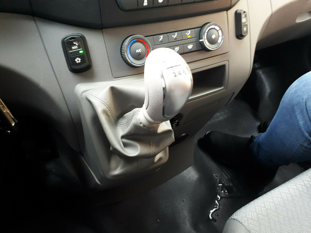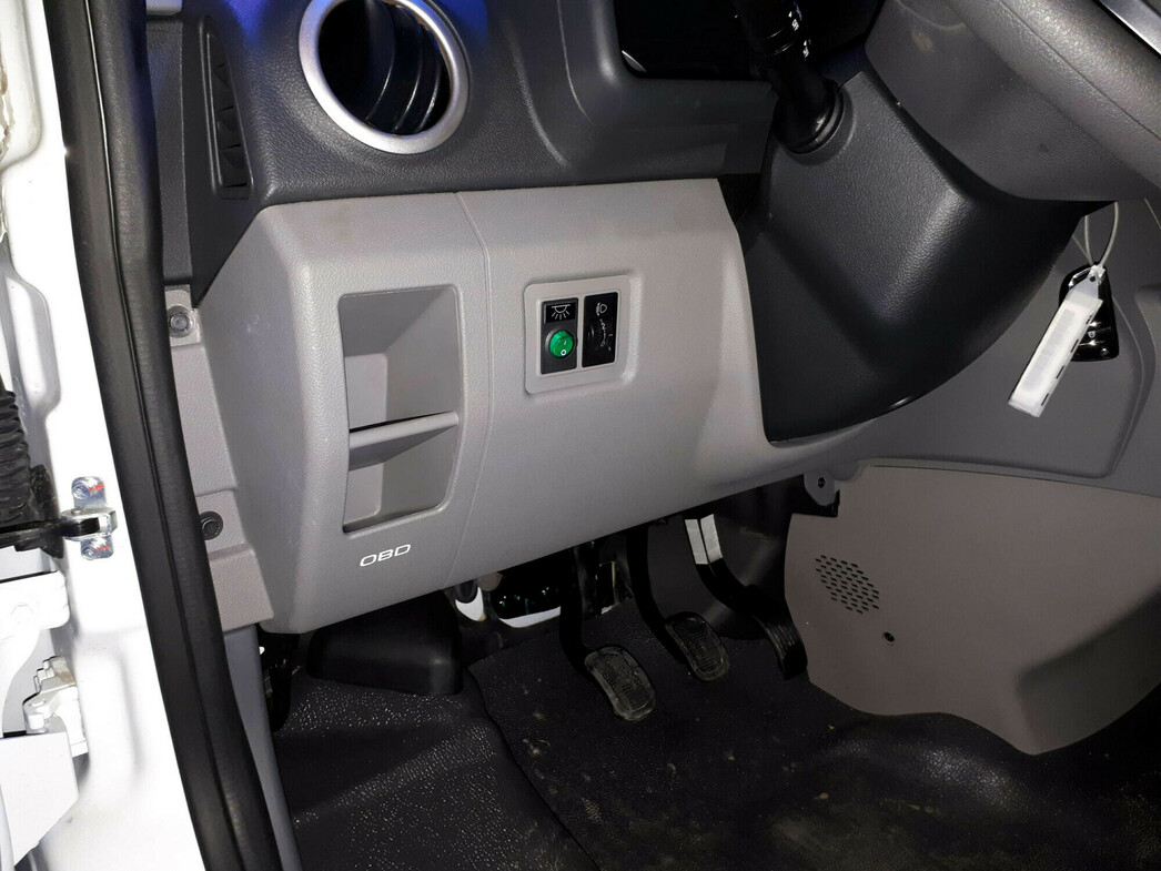 Открываю широкую дверь и забираюсь в салон. По оформлению он довольно прост. Пластик везде жесткий и скользкий, но это комтранс, потому с «легковыми» мерками сюда лучше не подходить: для работы вполне сойдет. У кресла есть механические регулировки и удобный подлокотник, а «джойстик» шестиступенчатой «механики» расположен прямо под рукой.