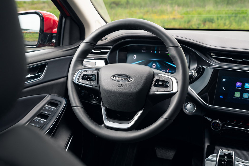 Зато какая в Omoda S5 звукоизоляция — здесь тихо, как в очереди к стоматологу. Посторонние шумы не раздражают, позволяя спокойно разговаривать даже на запредельной скорости. Пожалуй, лишь при резком ускорении в салон пробивается «крик» мотора, который, впрочем, легко погасить достойным звучанием аудиосистемы, умеющей воспроизводить музыку с мобильных устройств, как по «воздуху», так и посредством Android Auto и Apple CarPlay.