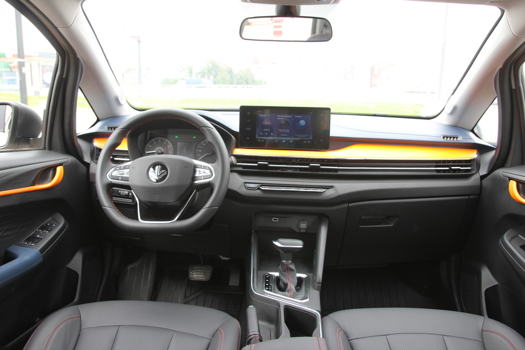 Несмотря на окружение из жесткой пластмассы, в салоне никакого уныния. Даже бодрит: сыграли резко контрастные ярко-оранжевые вставки отделки передней панели и дверных карт. Кажется, некогда этот ход придумали затейники из концерна Volkswagen AG, чтобы освежить свой унылый орднунг. Да, темные тона и бюджетное качество материалов. Однако — добротный дизайнерский продукт. Таким запросто мог бы оказаться какой-нибудь Renault или Suzuki.