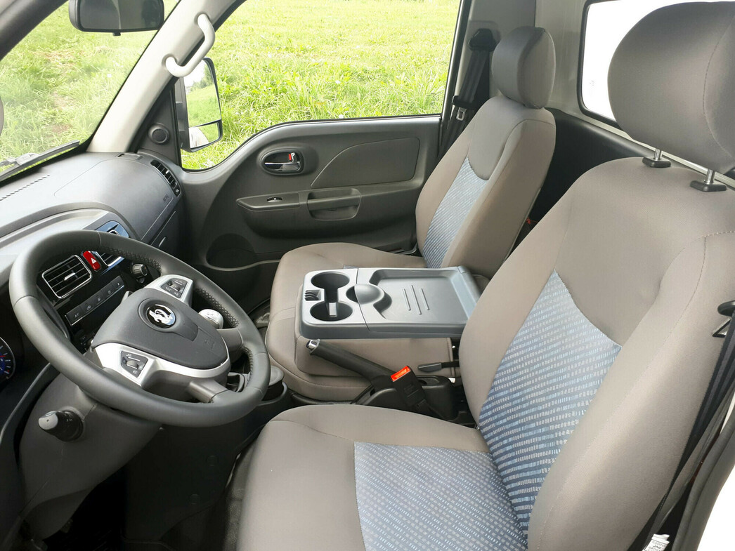Что касается тканевых кресел, то они вполне сносные. Единственное замечание — в движении мне (учитывая, правда, рост под два метра) не хватило длины спинки. Однако в гордских развозках водитель и экспедитор уживутся с комфортом, хотя третий член экипажа будет почти лишним..