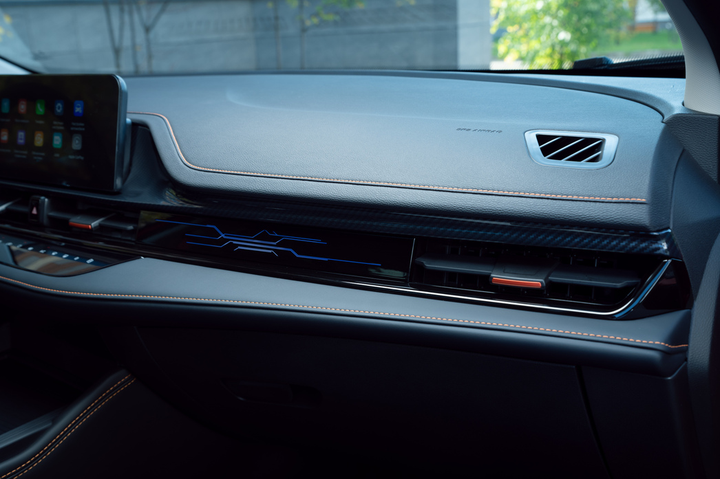 Впечатления от яркого салона однозначно позитивные. Сделано со вкусом, «О-модно», не даром Omoda настойчиво культивирует собственную техно-fashion-ДНК. Cпаркой двух 10,25-дюймовых мониторов перед водителем нас нынче не удивишь, видали и побогаче, но отделка интерьера в техно-стиле с яркими оранжевыми акцентами и вставками под карбон скучать не дает.