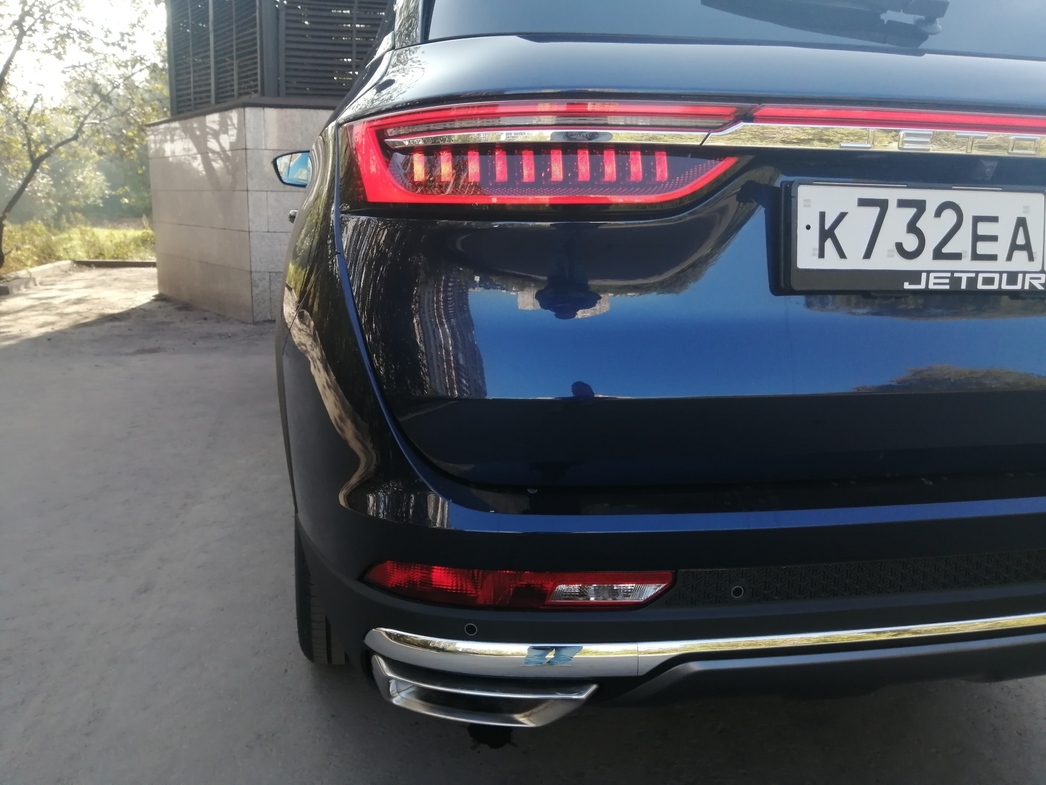 Передняя часть Jetour X90 Plus по нынешним временам смотрится как консервативная классика: с крупной серебристой «тельняшкой» фальшрадиаторной решетки, а также нормального размера и формы фарами. На его корме тоже все спокойно и солидно: некрупные фонари, соединенные полосой «стопа», «противотуманки» в бампере, пара выхлопных труб. Глаз отдыхает! Крупная машина со спокойным дизайном — то, что нужно для уверенного (наперекор вертихвостке-моде) в любом своем выборе семейного человека.