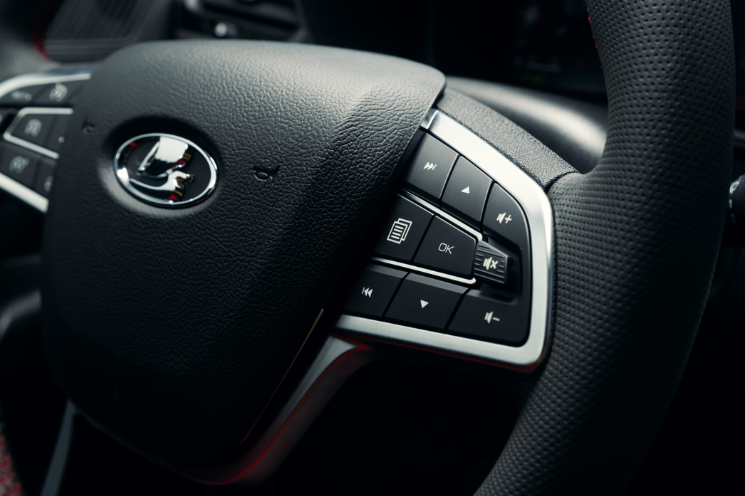 В салоне авто тоже все пропитано спортом. Не в том смысле, что там запах, как в полуподвальном тренажерном зале, а чувствуется дух скорости. Накладки на педали выполнены из рифленой нержавейки с прорезиненными вставками. Сиденья анатомической формы с ярковыраженной боковой поддержкой специально для версии Sportline получили новый наполнитель. Кстати, сидушки а-ля спорт мне никогда не нравились, особенно в долгих вояжах: толком не усядешься как тебе удобно, поясничная подпорка не ярко выражена, от чего спина начинает быстро ныть, и сами «ковши» жесткие, как деревенская скамейка. Но в случае с Vesta Sportline подобных претензий не возникло вообще никаких.