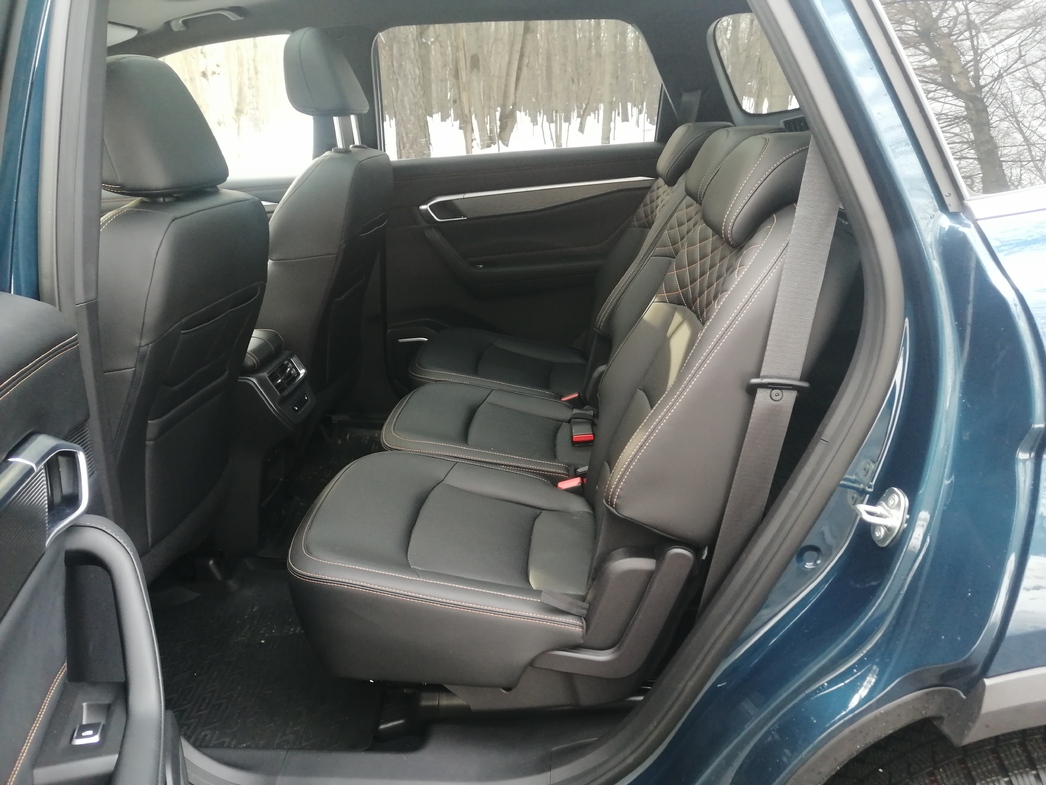 Geely Okavango – 7-местный автомобиль. И хочу сказать, что посадочные места третьего ряда вполне полноценные. В том смысле, что нет ощущения, будто пассажиру поставили раскладной табурет в багажнике и он вынужден там ехать в одной из поз йога. Причем для обитателей галерки предусмотрены такие удобства как подстаканники, ниши для смартфона и регулируемые дефлекторы кондиционера.