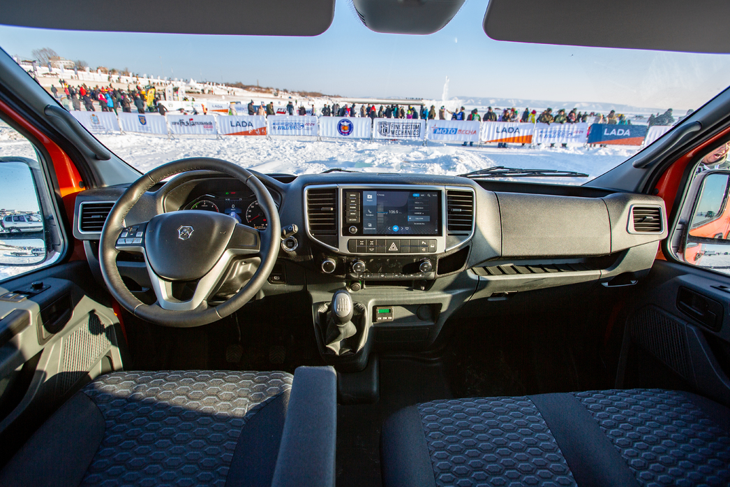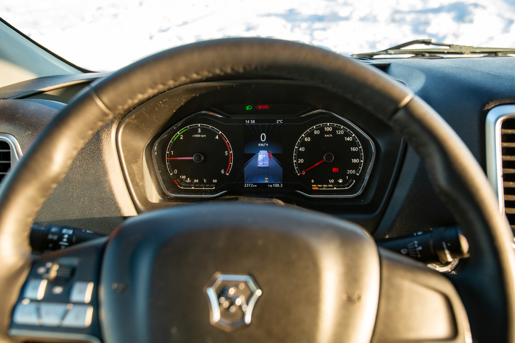 Новый двигатель G-серии все так же тих, вежлив и аккуратен и все так же тяговит, каких-то диссонансов после Cummins водитель не испытывает. Даже высокие обороты не разрывают барабанные перепонки — держись центра и следи за правой ногой. На улице холодно, термометр застыл близ отметки в «-30», но установленный на заводе автоматический догреватель (он же предпусковой подогреватель) не дает замерзнуть — главный зимний недостаток дизельных моторов нивелирован на превентивном уровне. Подумали о людях.