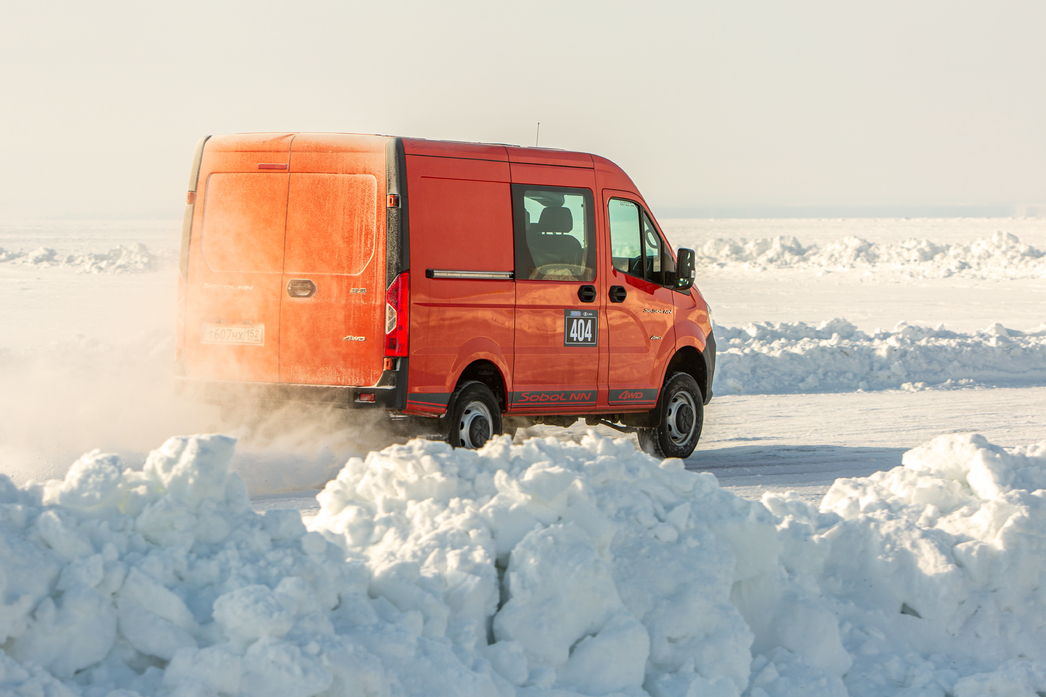 Сугробы, как вы понимаете, были, но выехать оттуда удалось своими силами. Может водитель «Соболя NN» позволить себе такую роскошь. Разогнаться до сотни на коротком круге не получилось, но в том диапазоне, что оказался доступен, машина ведет себя очень прогнозируемо и уверенно: большой автомобиль управляется легко и не требует той сноровки, которую обязан был иметь «рулевой» предшественника. Полный привод добавляет «NN» того, чего так не хватало зимой 2022-2023 года — уверенности на скользкой дороге.