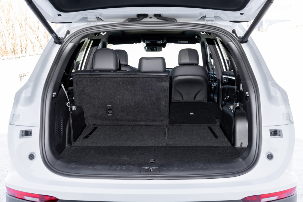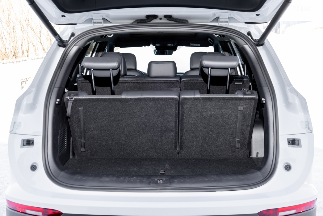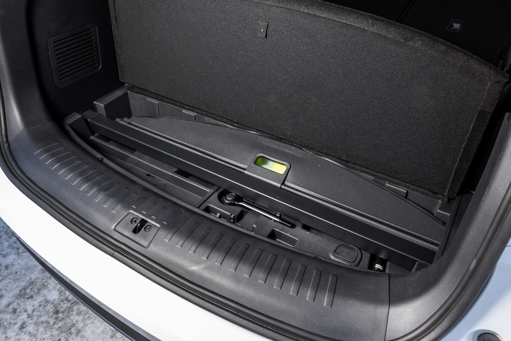 Внушает уважение и объемный багажник. В литро-цифровом выражении это 450/957/2215. Как видите, даже в семиместной конфигурации для багажа останется место. Но особенно впечатлила специальная ниша в подполе (запаска висит снизу кузова), куда можно спрятать рулонную полку-шторку. Удобно.