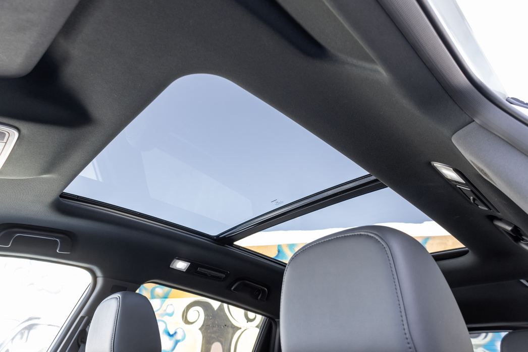 Чисто внешне кроссовер произвел впечатление. Массивный, с тисненым в 3D-манере богатым грилем. 20-е колеса, автоматическая светодиодная оптика с поворотной линзой, панорамная крыша, прикрытые дверями пороги и заводская тонировка задних стекол.