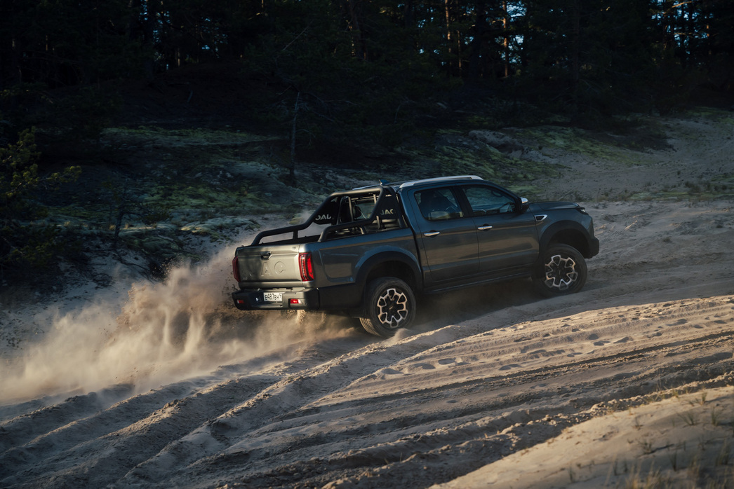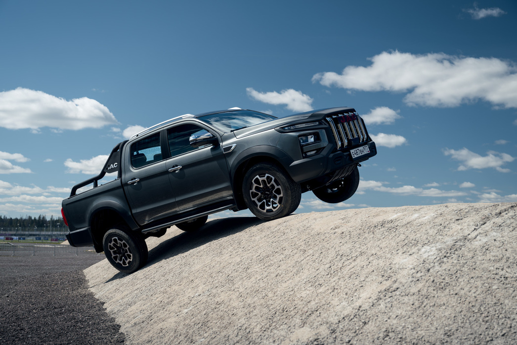 Неприятная особенность любого пикапа — задняя рессорная подвеска, которая отличается повышенной прыгучестью при езде порожняком по ухабам. Но в случае с JAC — комфорт оказался на высоте. И коллеги единогласно отметили, что на гребенке было полное ощущение, что ты за рулем крупноразмерного кроссовера, но уж точно не пикапа.