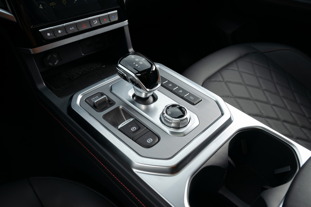 Ну а что у нас с мотором и трансмиссией? Под капотом красавца JAC T9 стоит 2-литровый бензиновый турбоагрегат мощностью 224 «лошадки», который работает в связке с классическим 8-ступенчатым «автоматом». Не могу сказать, что автомобиль способен «выстреливать» с места или резво ускоряться на трассе для обгона фуры, но в целом откровенного дефицита «кобылок» не чувствуется. Есть вопрос к настройке АКП. Перебирание передач наверх — без нареканий. А вот при торможении отчетливо чувствуются пинки, будто тебя пытается «ускорить» уснувший за рулем растяпа, едущий позади.