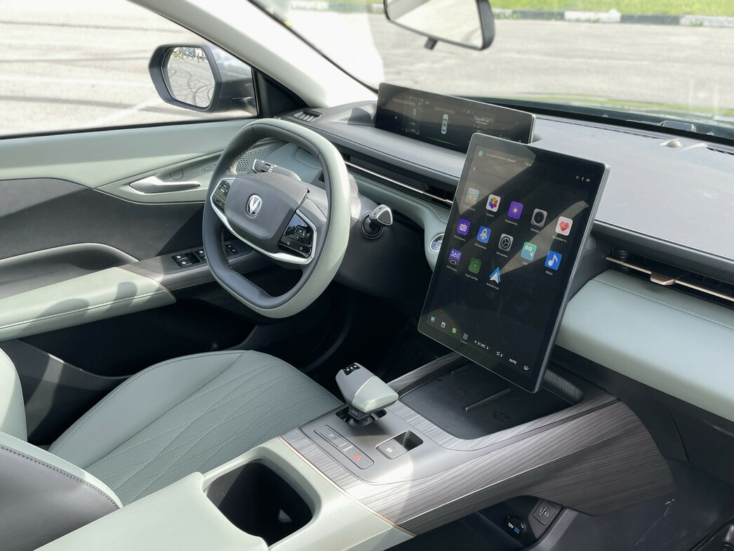 Планшет информационно-развлекательного комплекса в Changan Lamore вертикальный, и он «смотрит» строго по центру. Имей он меньшую диагональ, возможно, воспринимать тачскрин было бы проще — как в LADA Vesta, где я вообще об этом не задумывалась. А тут будто не хватило пары градусов — развернули бы экран чуть-чуть к водителю, наверняка стало бы удобнее.